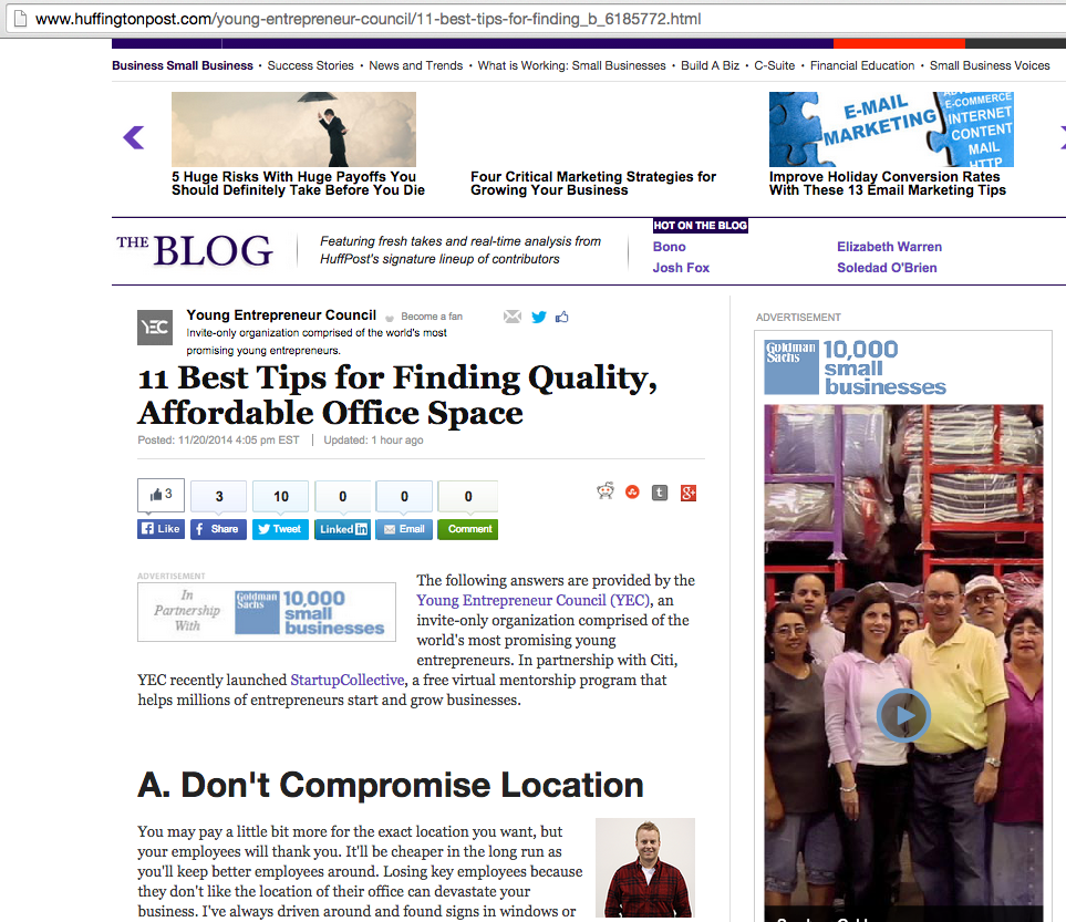 You may pay a little bit more for the exact location you want, but your employees will thank you. It’ll be cheaper in the long run as you’ll keep better employees around. Losing key employees because they don’t like the location of their office can devastate your business. I’ve always driven around and found signs in windows or gone into buildings we want to be in. Location, location, location!